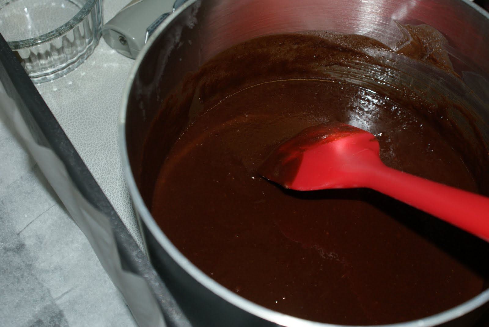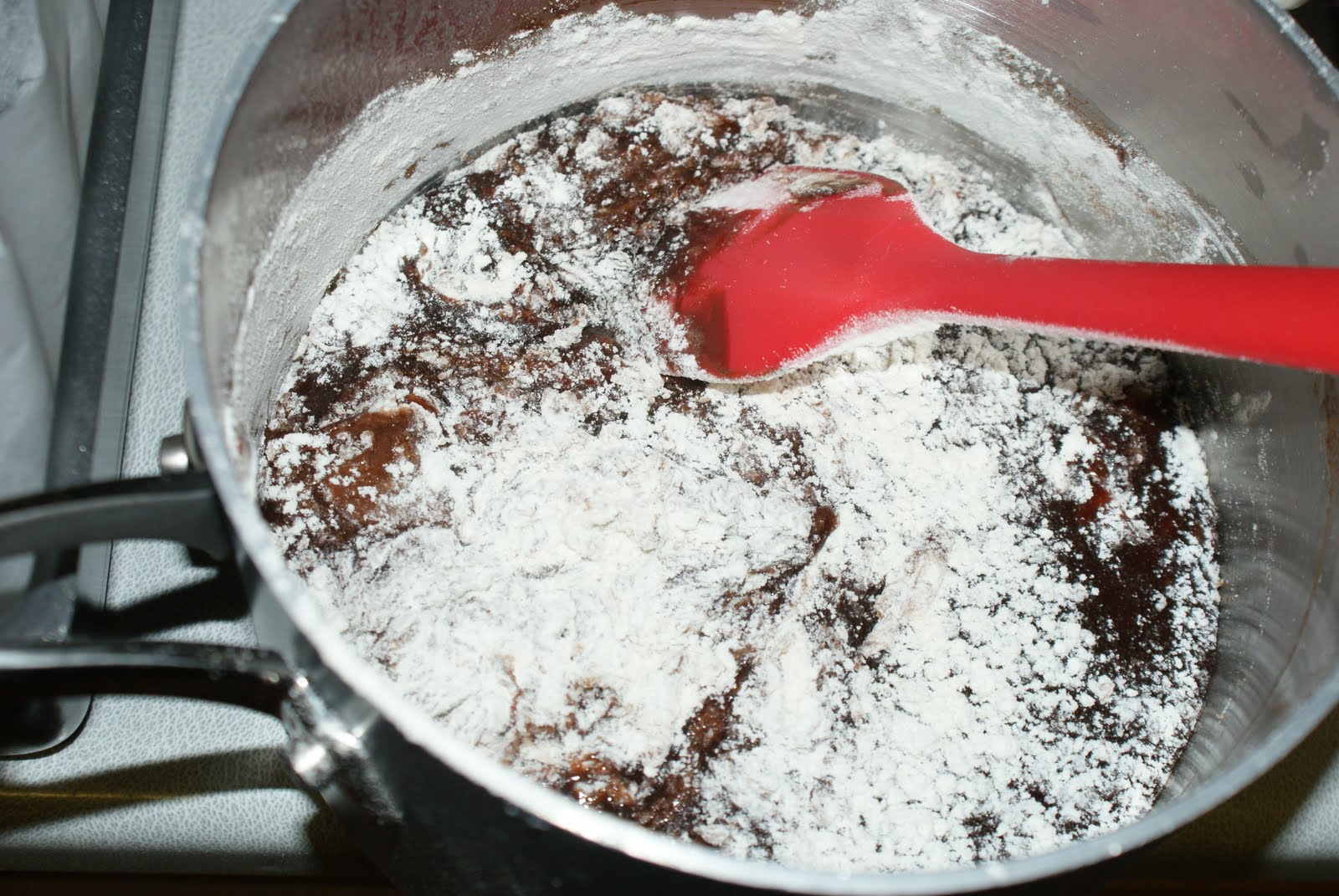 Melt the chocolate and butter in a pan over a low heat. Purists at this point would tell you you should do it in a bowl above a pan of boiling water but if you’re careful and like the quick way stick with me and chuck it in the pan.
